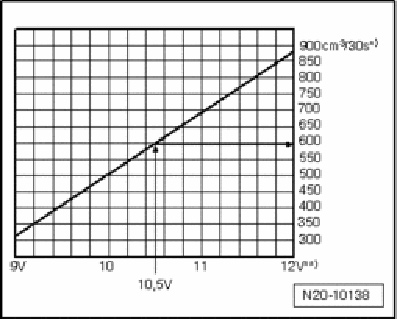 During test, a voltage of 10.5 Volts is measured. This results in a minimum delivery rate of approximately 580 cu.cm /30 s.
