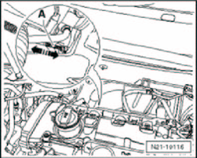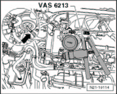 NOTE: If pressure cannot be raised with hand vacuum pump VAS 6213 or pressure drops immediately, check hand vacuum pump VAS 6213 and connecting hoses for leaks. If no malfunction can be found: Replace vacuum diaphragm.