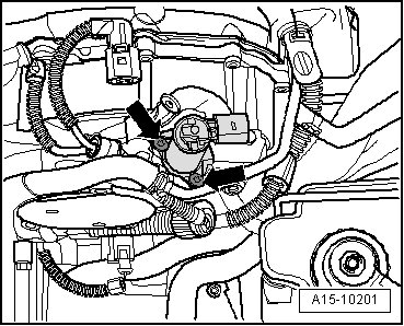 - Remove the bolts - arrows - and remove the camshaft adjustment valve 1 out of the housing.