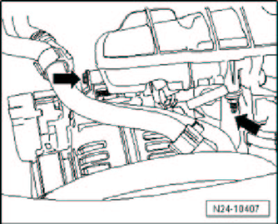 - Remove the coolant pipe and oil dipstick guide tube from the intake manifold - arrows -.