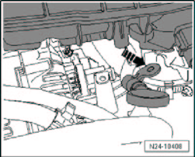 - Press the oil dipstick tube down and to the right - arrow -.