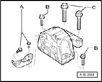 2) On manual transmissions, only use bolts with strength category 10.9 if threaded inserts (e.g. Helicoil) are installed. Identification: Section on first thread - arrow -.
