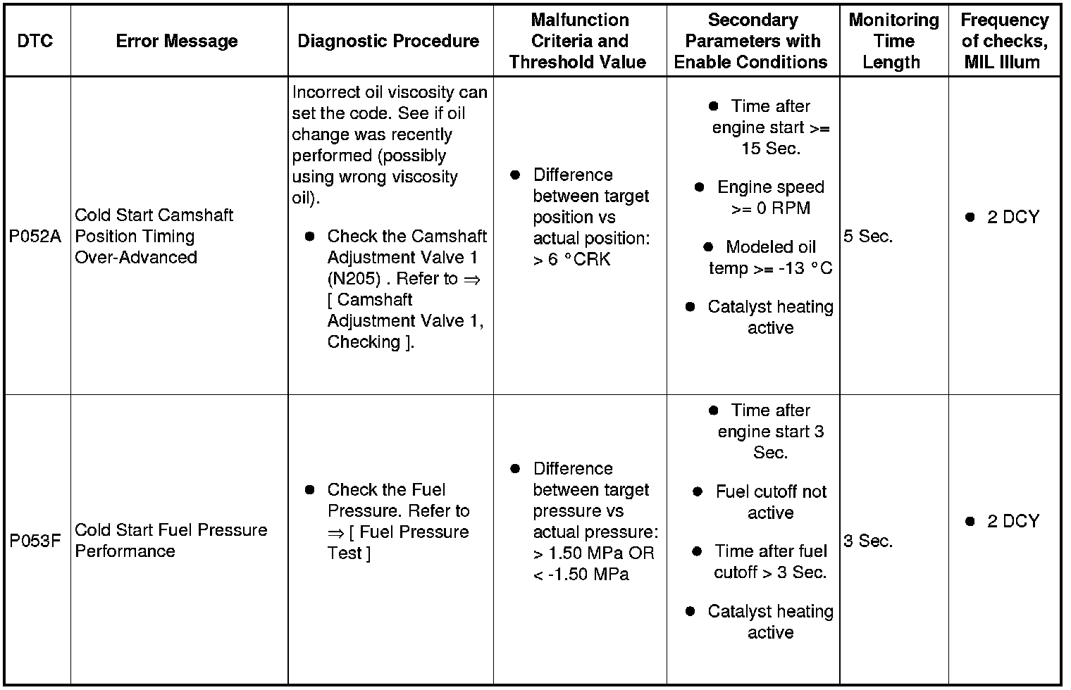 DTC Tables