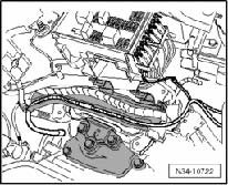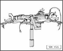 - Lower Engine/Transmission Jack VAG 1383 A and guide the steering gear wiring harness back.