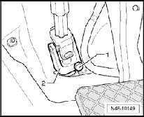 - Remove mounting nuts - arrows - and remove foot well trim - 1 -.