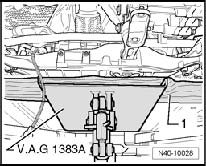 - Place a block of wood - 1 -, for example, between Engine/Transmission Jack VAG 1383 A and the subframe.