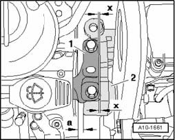 Casting edge on engine support - 2 - must stand parallel to bracket - 1 -.