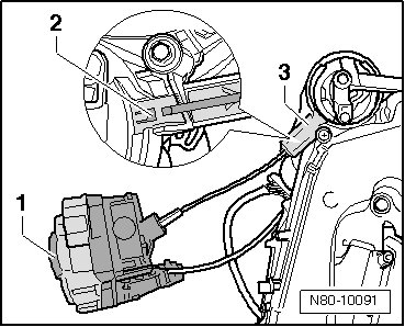 - Reach into center console and release retaining tab - 1 - by pressing - in direction of arrow -.