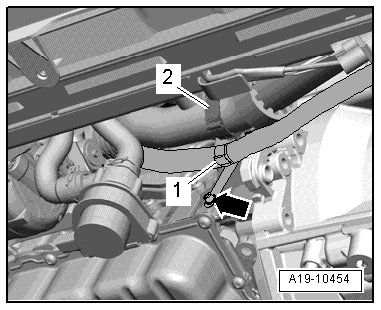 - Lay aside the coolant hose - 2 - a electrical wiring harness - 1 -.