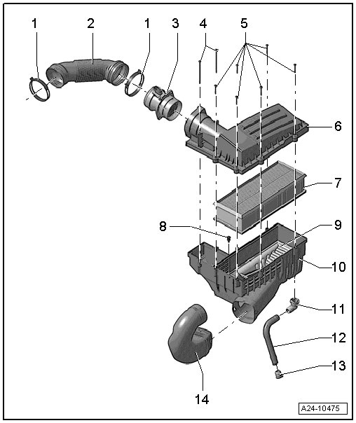 3 - Mass Air Flow (MAF) Sensor -G70- with Intake Air Temperature (IAT) Sensor 2 -G299-