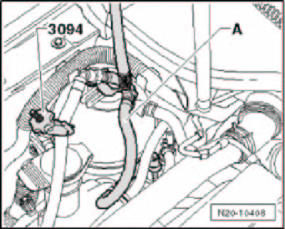 - Connect adapter hose KLI 9210/55-1 to ventilation line - A - as shown.