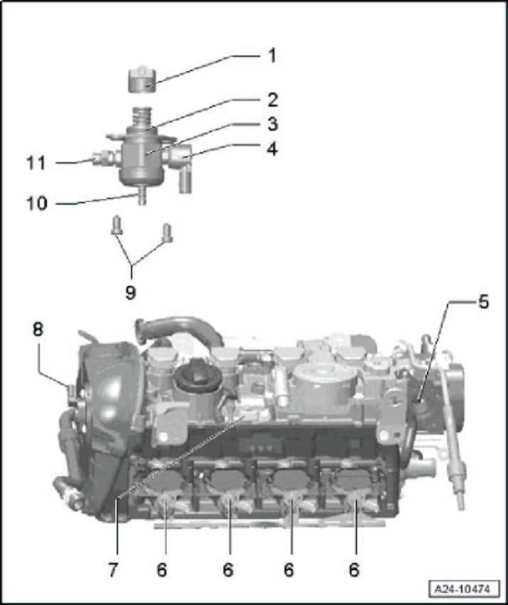 - Remains inserted in cylinder head after removing the high-pressure pump, removable