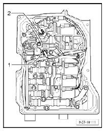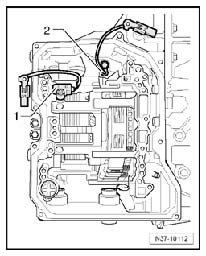 Solenoid valves N88 and N89 as well as pressure control valves N90, N91, N92, N93, N282 and N283 are secured to valve body.
