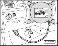 - Plug diagnostic cable VAS 5051/1 connector - 2 - or VAS 5051/3 into vehicle Data Link Connector (DLC).