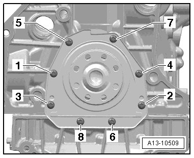 - Tighten the bolts - 1 through 8 - in the sequence shown: