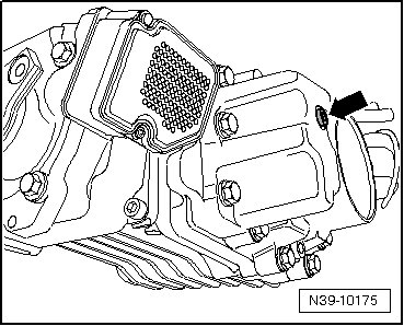 - You can check for correct filling by lifting vehicle again and check whether oil is leaking out at adapter - A -.