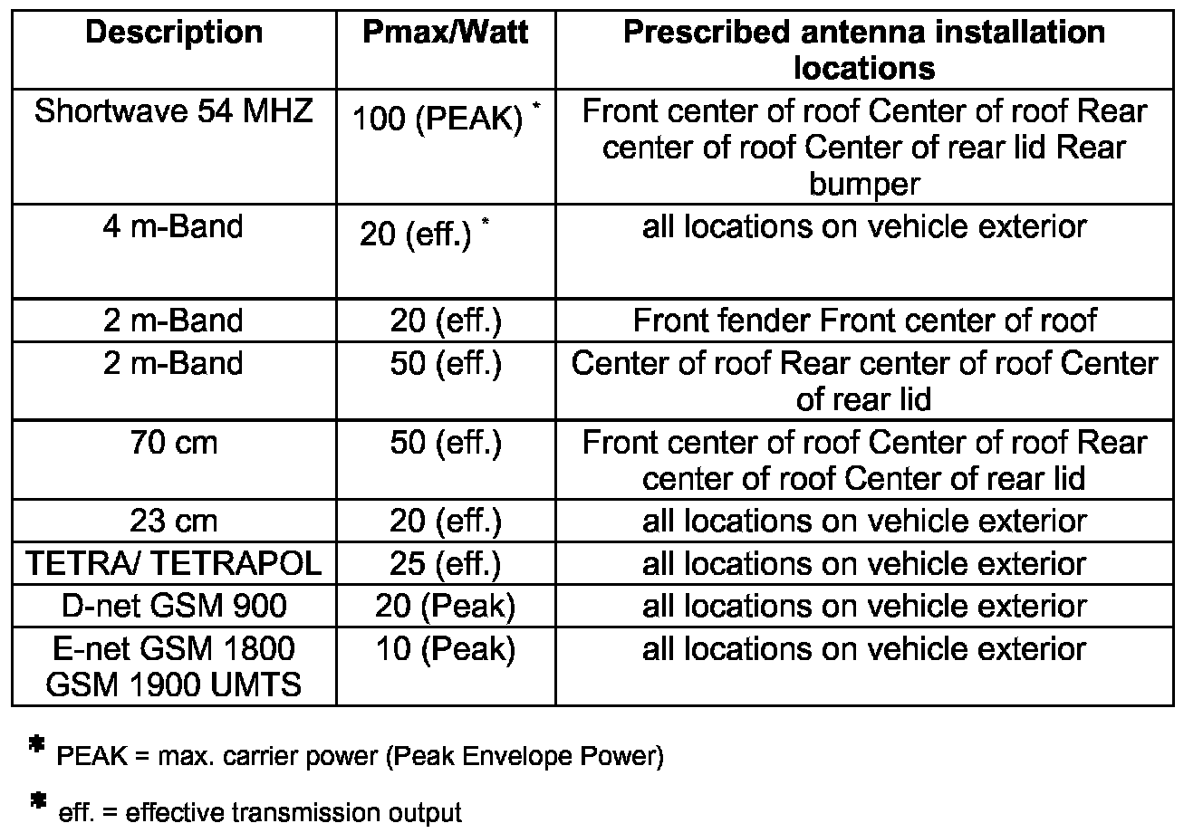 - Deviations from these guidelines (location of antenna, frequency, output)are only permitted in special isolated cases after a single-case test carried out by the EMV center of VW AG in Wolfsburg.