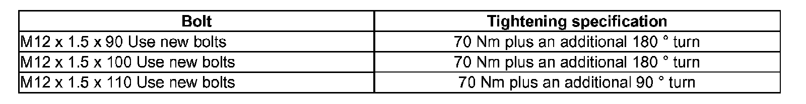 Tightening Specifications: