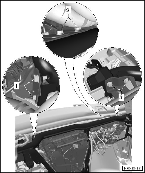 - Remove screw - 1 - behind instrument cluster (3.5 Nm).