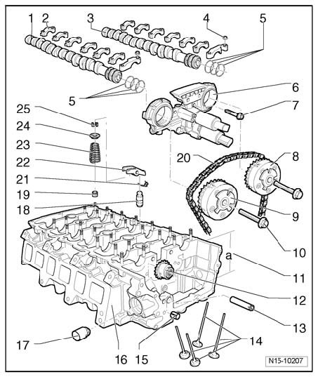 ^ To remove and install, counter-hold at camshaft using an open-end wrench (27 mm) Camshafts.