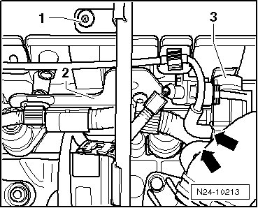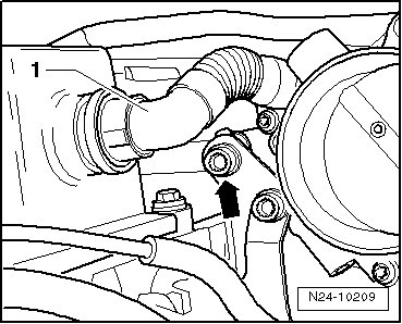 - Disconnect the connecting hose - 1 - for the crankcase ventilation from the cylinder head cover.
