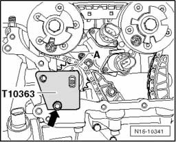 ^ Exhaust camshaft adjuster must be able to be inserted easily on exhaust camshaft and be tightened hand-tight.