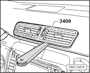 - Pull the center vent out of the instrument panel using the special hook (3370).