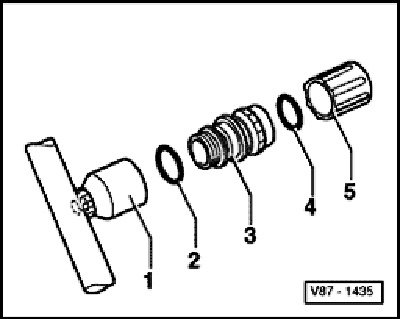 - Use a suitable socket T10364 to loosen the valve insert Socket T10364 for the high pressure/low pressure side service connection valves in the refrigerant circuit.