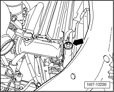 - Carefully push the radiator toward the engine until the cover bolt - arrow - is accessible.