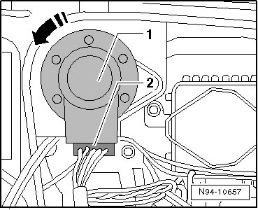 - Rotate headlamp beam adjustment motor - 1 - in - direction of arrow - and remove it.