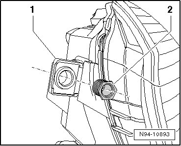 - Insert new mounting tab - 2 - in mount - 3 - on the headlamp and secure the mounting tab with mounting bolt - 1 -.