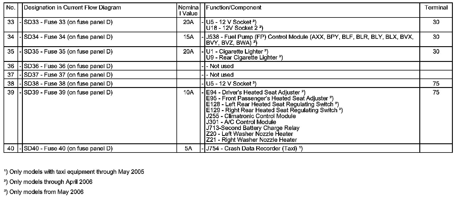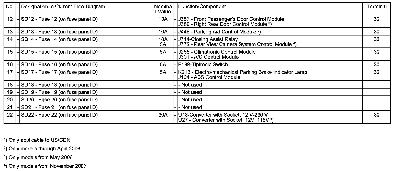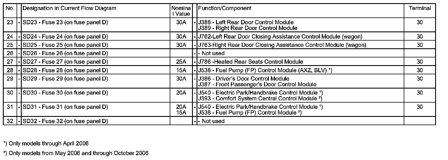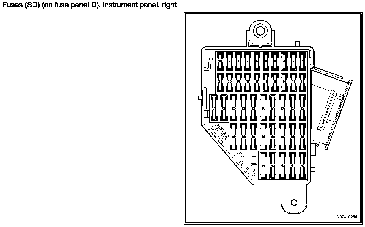 Fuses (SD) (On Fuse Panel D), Instrument Panel, Right: