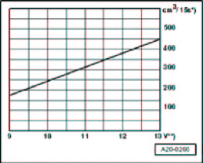 - Compare quantity of fuel delivered with minimum delivery rate in diagram (cu.cm/15s).