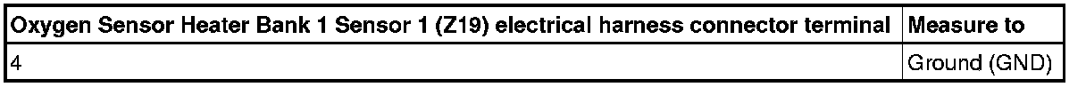 - Using a multimeter, check the Oxygen Sensor Heater Bank 1 Sensor 1 (Z19) terminals 3 to 4 for resistance.