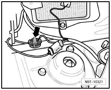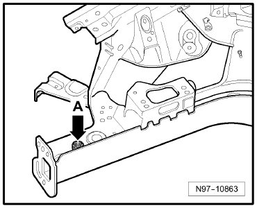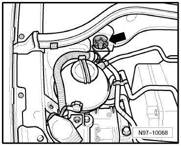 (12) - Ground Connection (in engine compartment, left) -Arrow B-