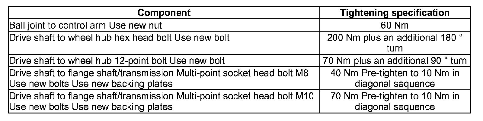 If a vehicle needs to be moved when the drive axle is removed, an outer joint must be installed and tightened to 120 Nm.