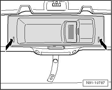 - Push extracting tools apart in - direction of arrow - so that the locking mechanism disengages easily. Then pull the complete insert out of glove compartment with extracting tools pressed.