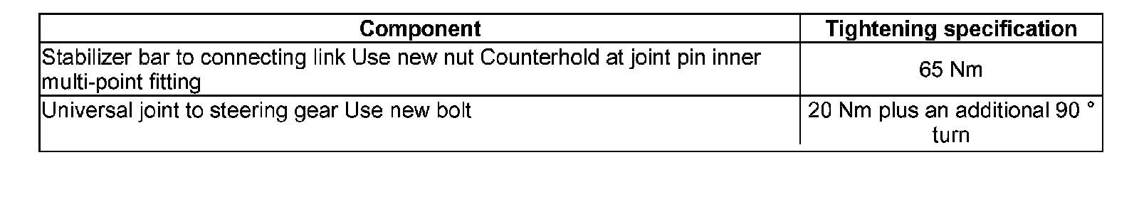 Tightening Specifications