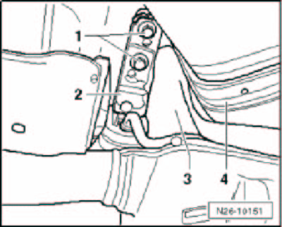 Mount - 2 - is installed on underbody in connection with shield - 3 - and fuel tank tension strap - 4 -.