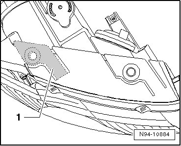 - Remove the remains of the headlamp mounting tab - 1 - as depicted.