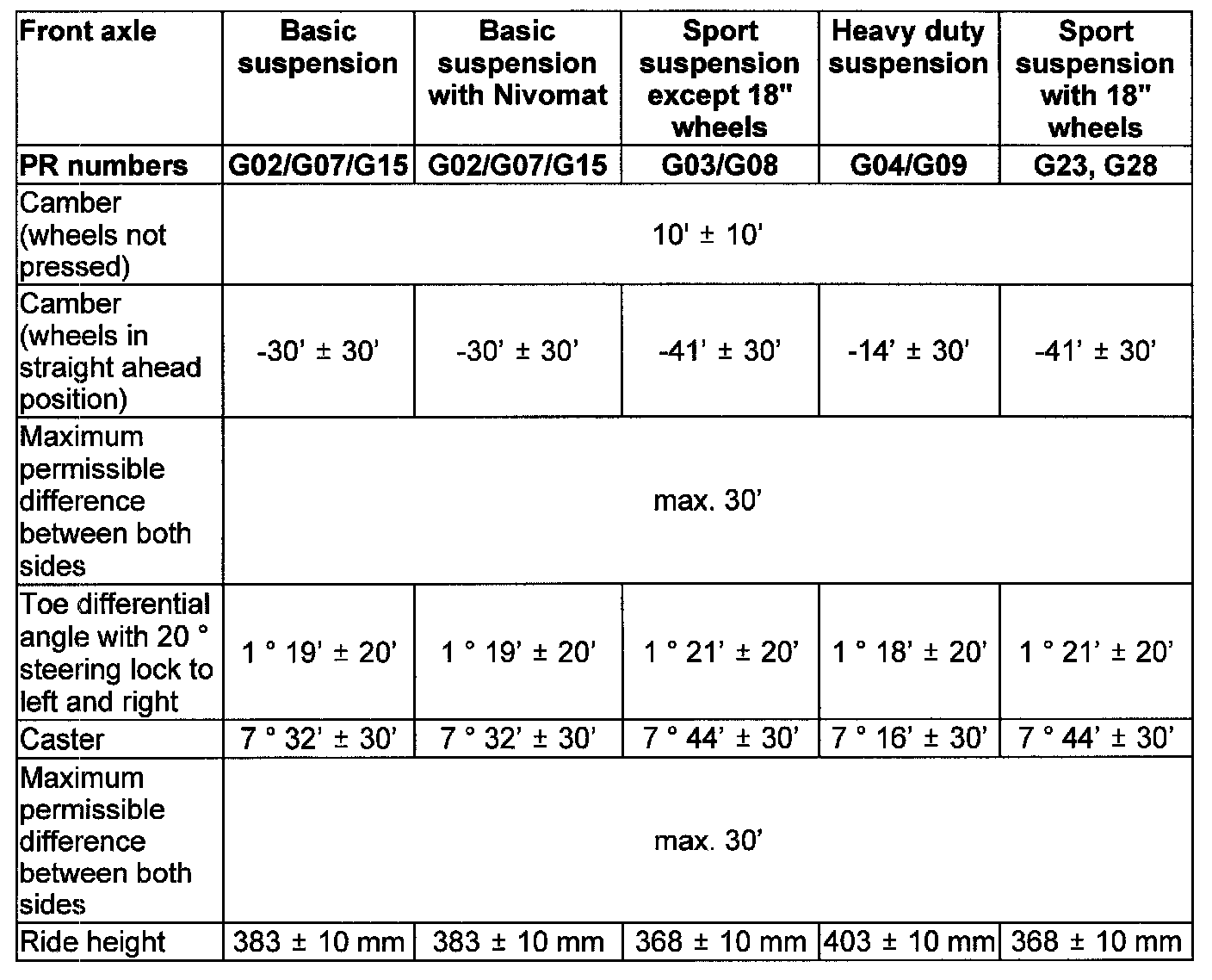 Wheel Alignment Specifications