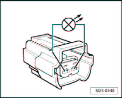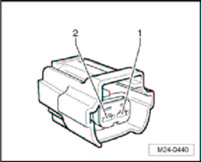 - Connect a diode test lamp (12V) to the electrical harness connector terminals 1 and 2 of the Fuel Injector to be tested.