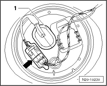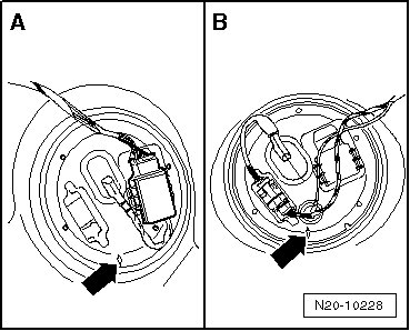 - Drain the fuel tank as necessary using (VAS 5190). Refer to => [ Fuel Tank, Draining ] Fuel Tank, Draining.