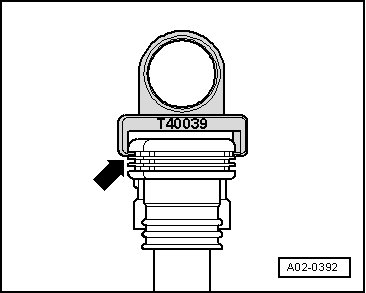 • To pull off spark plugs, place ignition coil puller (T40039) on topmost thick rib - arrow - of ignition coils with power output stages.