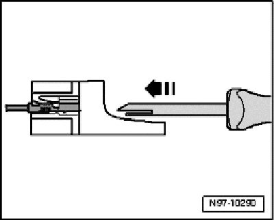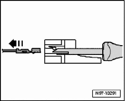 - At the same time, push release tool in direction of terminal housing and pull the released contact out of terminal housing - arrow -.