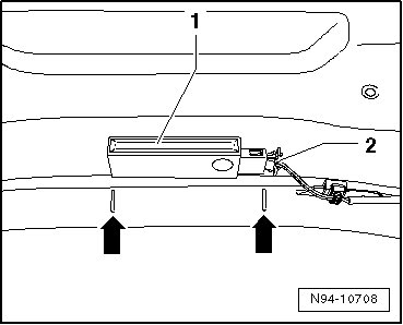 Component location: on center tunnel at rear, in front of rear seat bench heel panel => [ Interior Access/Start Authorization Antenna 2 ] See Image Below.