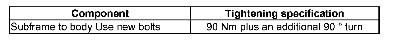 - Insert special tools with bonded rubber bushing into subframe as illustrated.