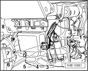 - Disengage and disconnect harness connector - 6 - at Windshield Washer Fluid Level Sensor - 7 -.