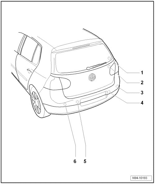• Right Rear Inner Parking Aid Sensor (G335) is Right Rear Center Parking Aid Sensor (G205)