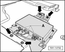- Disconnect electrical connectors - A - and remove fasteners - arrows -.